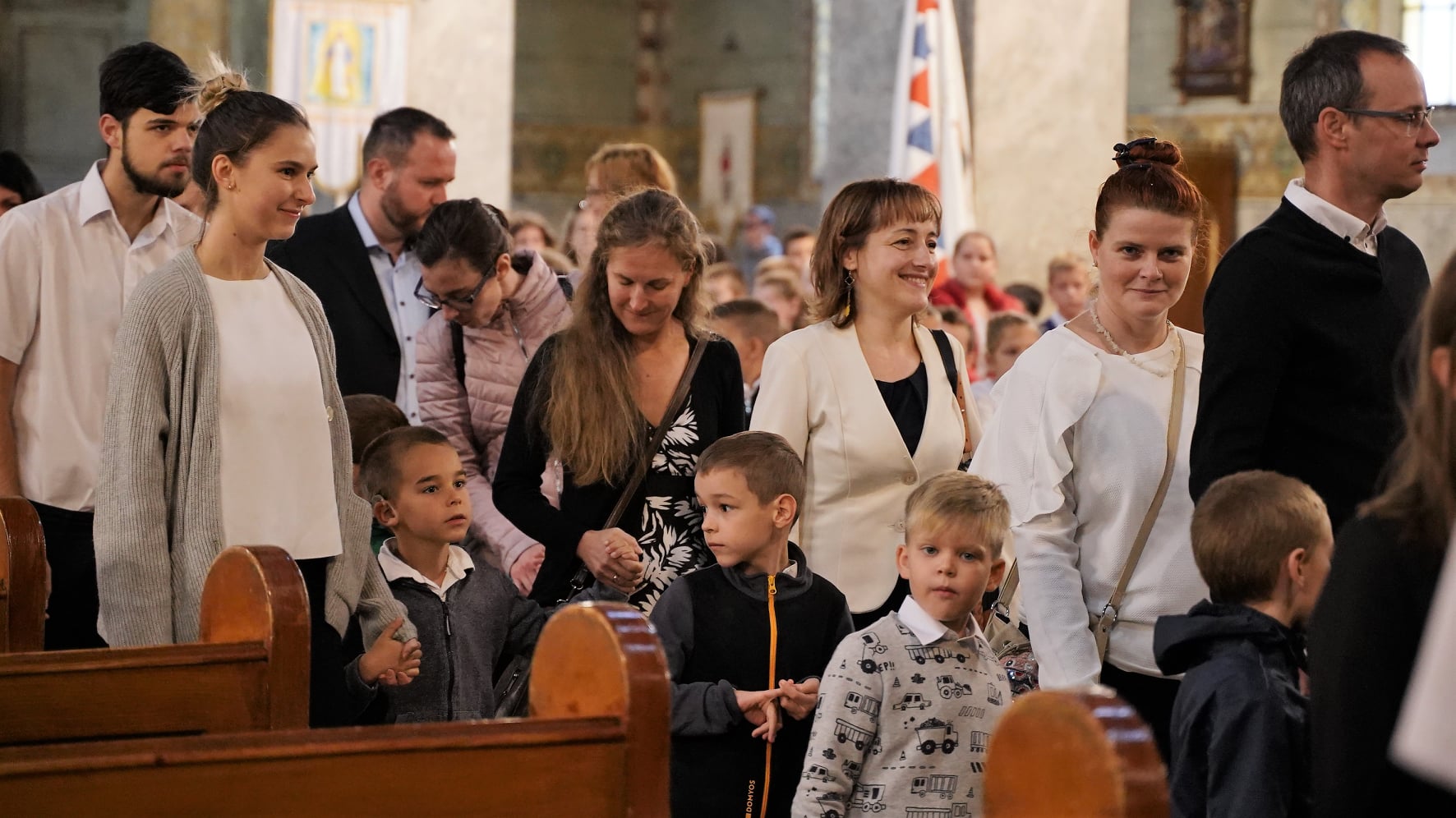 A 9 órakor kezdődő szentmise előtt az első osztályosok ünnepélyesen bevonultak a templomba, szüleik és a gimnázium tanulói kíséretében.